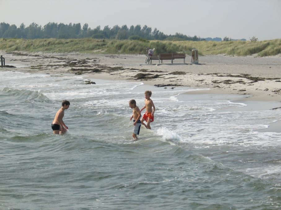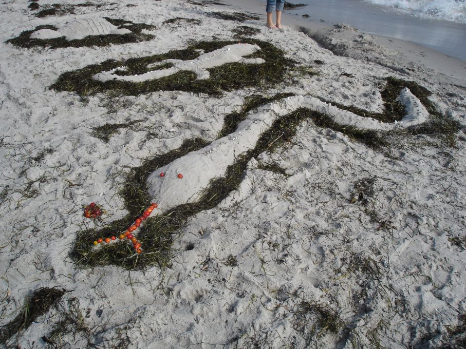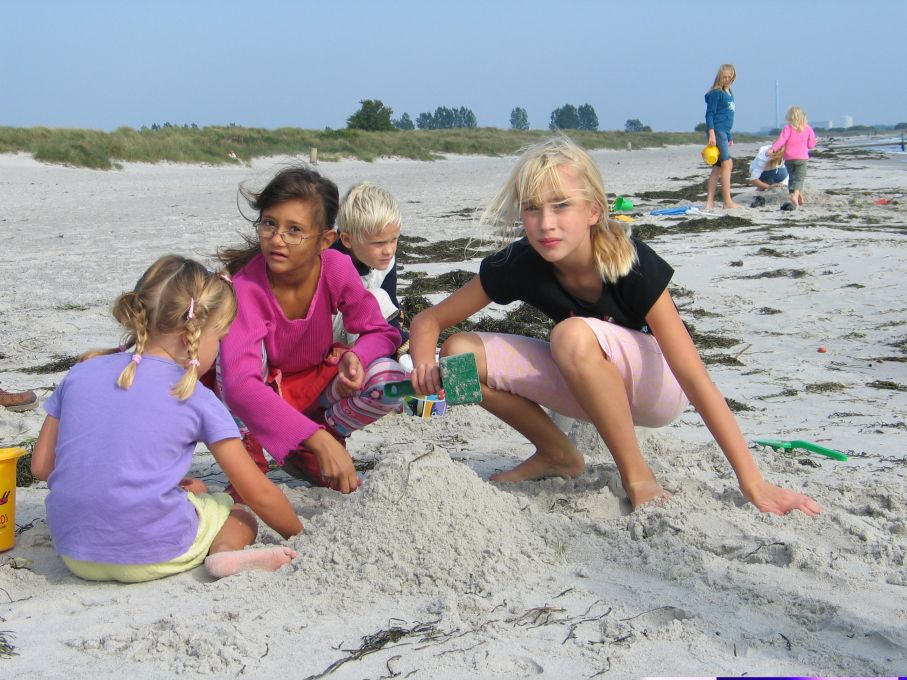 Vi mødtes på skolen kl. 11 og cyklede i hård modvind de 10 km til Ishøj Strand. Solen skinnede fra en skyfri himmel, og humøret var i top. Efter ca. 1 times cykling ankom vi til Ishøj strand, hvor flere familier samt Tine, og senere også Esben stødte til. Vi spiste vores medbragte mad og kager.... Uhm, sikken nogle gode kagebagere der er i klasserne. Børnene legede på legepladsen, mens de voksne hyggesnakkede – der var vist også nogle af drengene som blev våde, selvom de ikke måtte være ved vandet uden de voksne – puha, ikke så godt. Efter frokost var det til til en badetur i de høje bølger, Marc’s far var den eneste friske voksne, som hoppede i de store bølger sammen med drengene. På strandbredden blev der bygget flotte sandskulpturer – slotte, slanger, krokodiller og andre flotte figurer pyntede lige pludselig på stranden. |